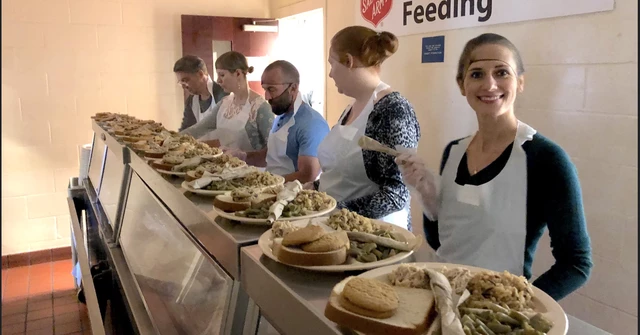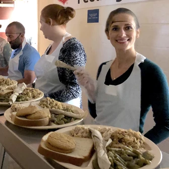 We volunteer at Transitions serving hot, nutritious lunches to people experiencing homelessness.